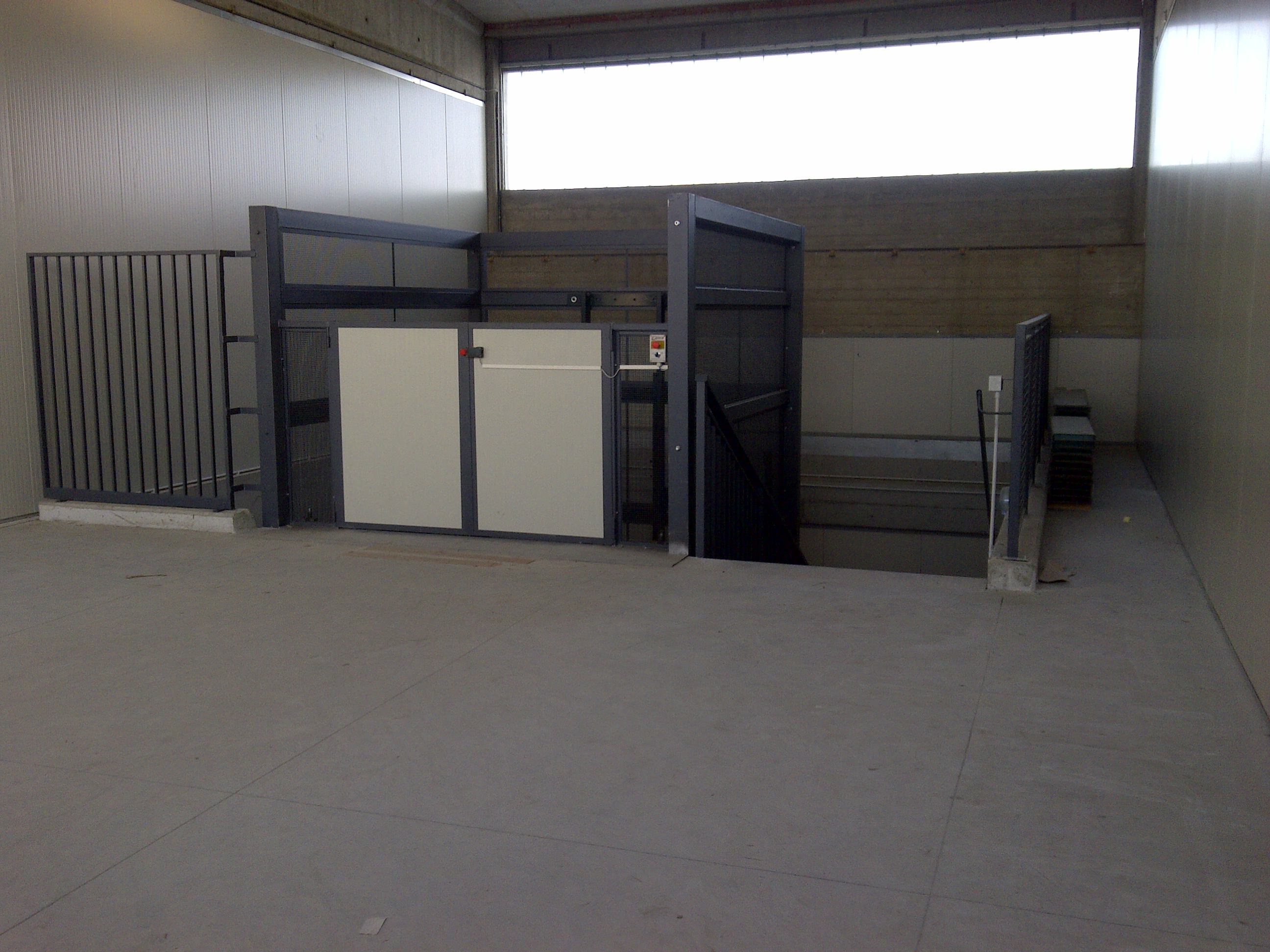 Movimentazione merci e persone con elevatore di portata utile kg 1000 e cabina m. 2,5×2,5.