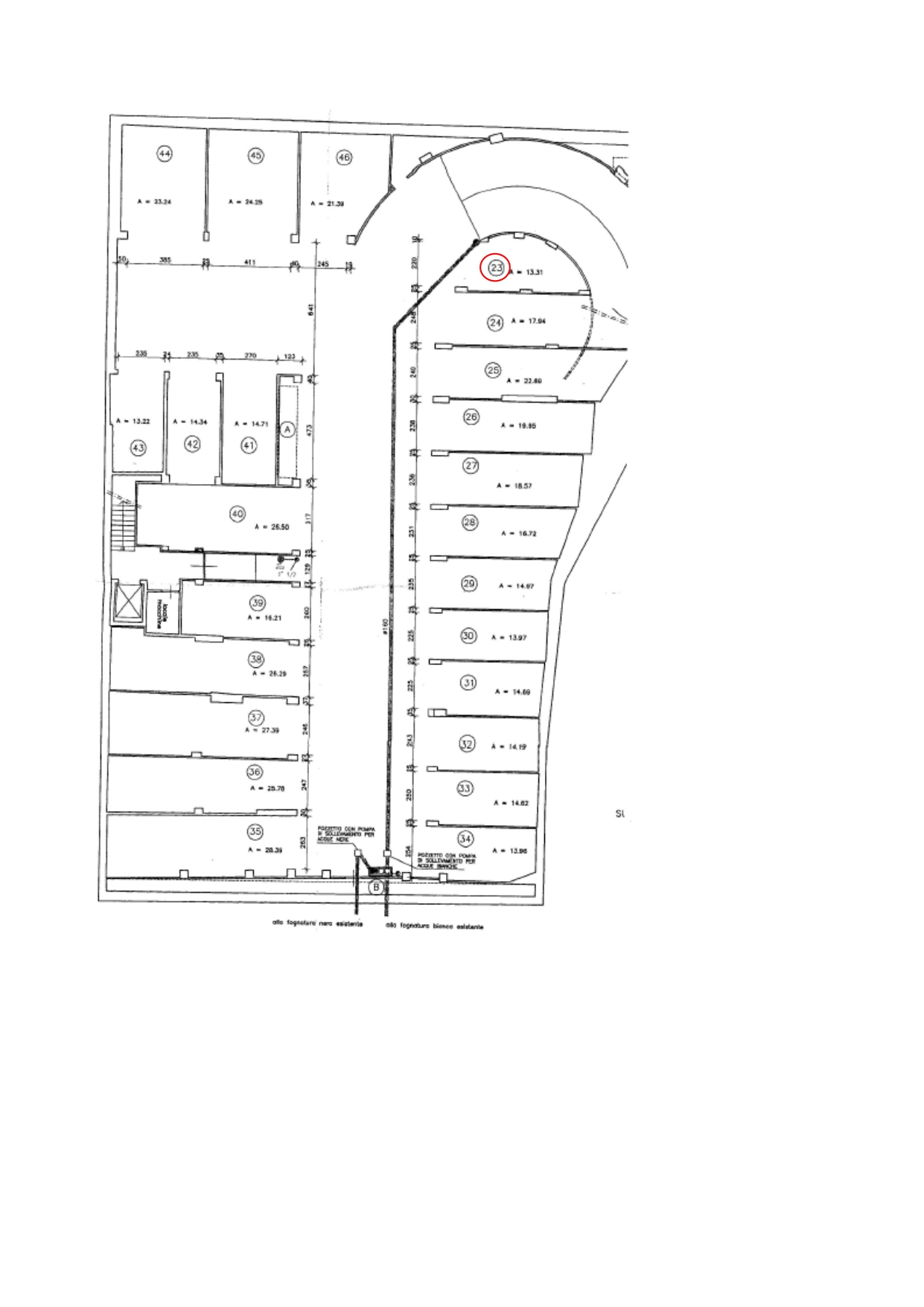 Box ubicato al primo piano interrato di una autorimessa di recente costruzione. L’autorimessa è stata realizzata nel cortile di un condominio, ma ha una gestione totalmente indipendente e svincolata dal condominio stesso. Accesso da strada con cancello carraio automatico, cancelletto pedonale e rampa di servizio molto comoda; entrata pedonale ai box mediante scale ed ascensore. Allacciamento diretto alla fognatura di entrambe i piani. Sono disponibili lavandini condominiali.